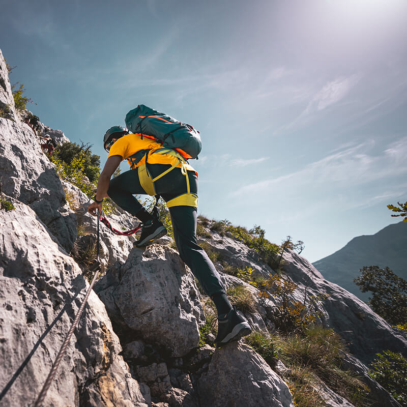 The El Cap is a more comfortable approach shoe designed to handle the most demanding technical hikes, summit scrambles, and via ferrata (fixed hiking/climbing) routes thanks to a Vibram Ferrata Megagrip outsole that combines underfoot traction with a highly-tactile climbing zone at the toe.