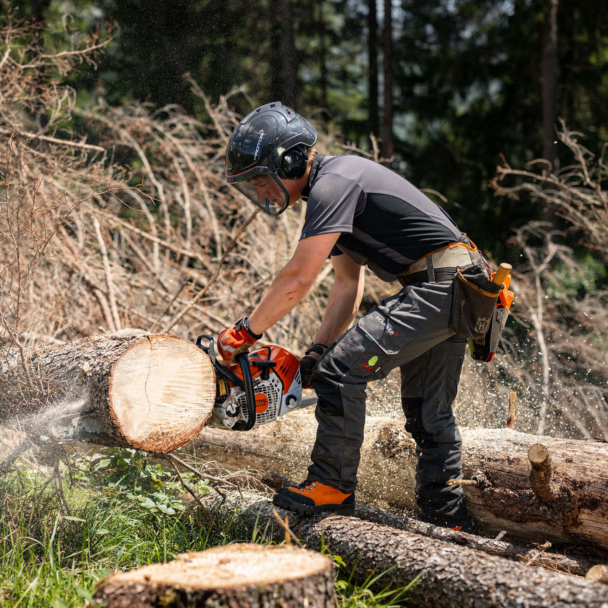 ▪ Cut-resistant lining (EN ISO 17249:2013 Level 2 – 24 m/s) for chainsaw protection.